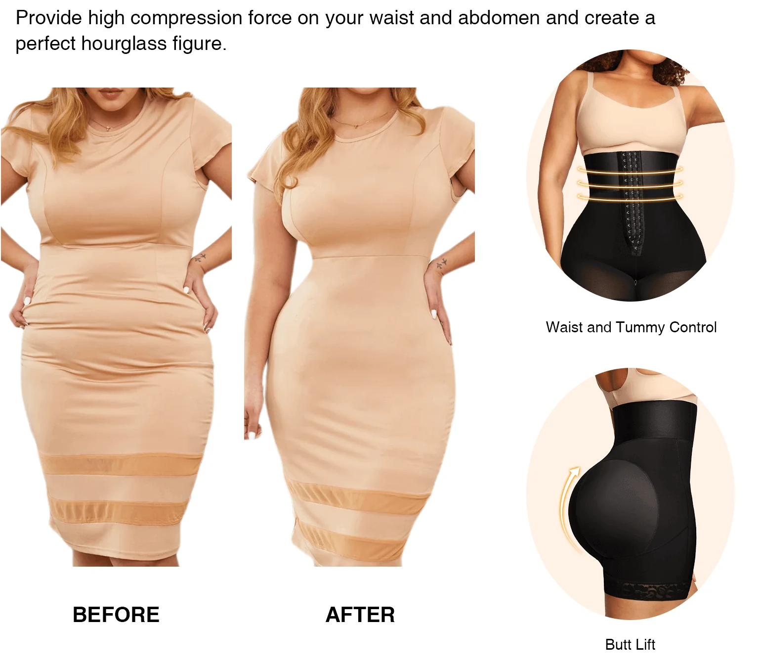 •Tummy control shapewear, Comfy elastic waistband allows maximum elasticity & resistance for the abdomen flattening effect.